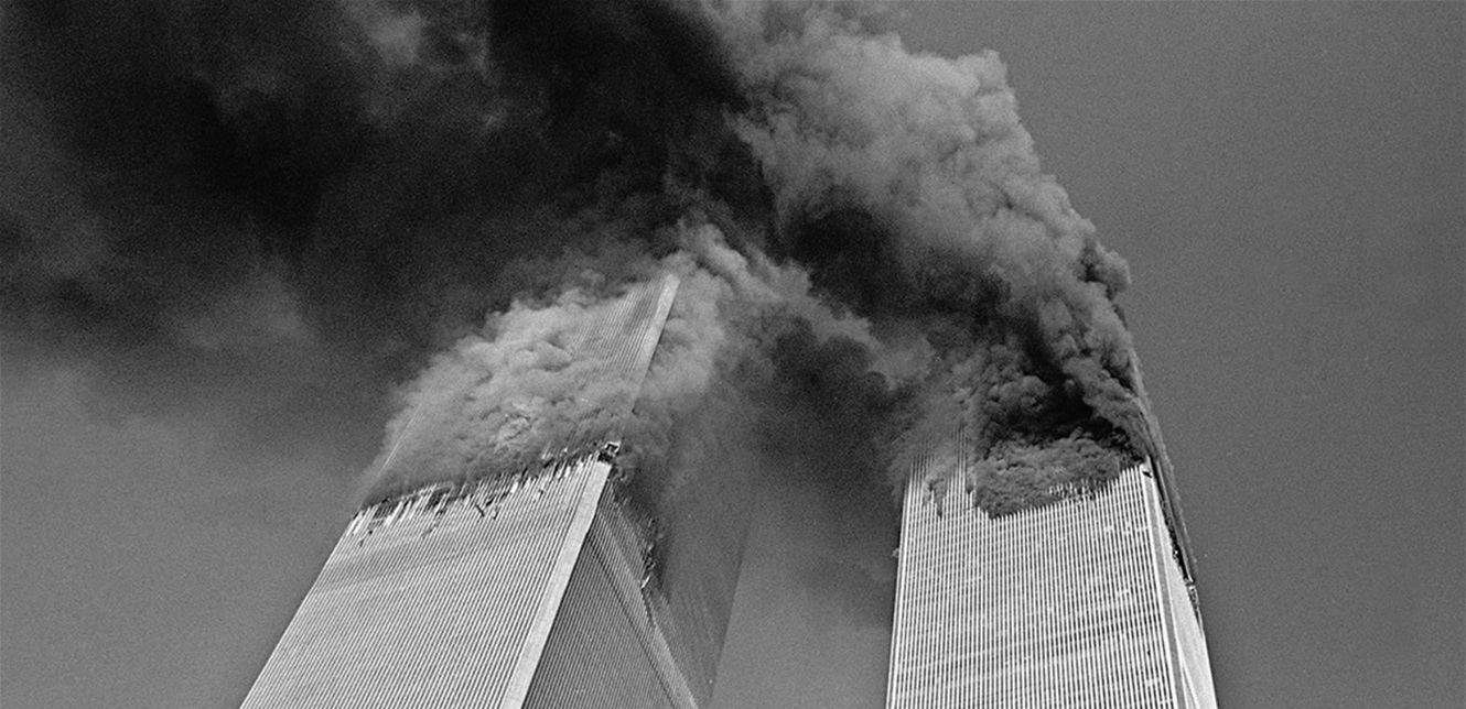 وبحسب موقع “History” الأميركي، “في حوالي الساعة 8:46 من صباح ذاك اليوم، اصطدمت طائرة بوينغ 767 تابعة للخطوط الجوية الأميركية، محملة بعشرين ألف غالون من وقود الطائرات، بالبرج الشمالي لمركز التجارة العالمي في مدينة نيويورك. وخلّف الاصطدام حفرةً واسعةً مشتعلةً بالقرب من الطابق الثمانين من ناطحة السحاب المكونة من 110 طوابق، مما أسفر عن مقتل مئات الأشخاص على الفور واحتجاز مئات آخرين في الطوابق العليا. وبينما بدأت عملية إخلاء البرج والمبنى المجاور التابع له، بثت كاميرات التلفزيون صورا حية لما بدا في البداية وكأنه حادث غريب. وبعد مرور 17 دقيقة على اصطدام الطائرة الأولى، ظهرت طائرة بوينغ 767 ثانية، رحلة رقم 175 التابعة لشركة يونايتد إيرلاينز، في السماء، واتجهت بشكل حاد نحو مركز التجارة العالمي، واصطدمت بالبرج الجنوبي في الطابق الستين تقريبا. وتسبب الاصطدام في انفجار هائل تناثر على إثره الحطام المحترق فوق المباني المحيطة والشوارع. أميركا كانت تتعرض للهجوم”.