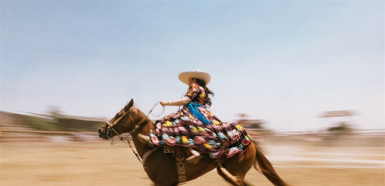 “إسكاراموزا”: راكبات الخيل المكسيكيات يتألّقن بالفساتين التقليدية تحت حرارة 40 درجة