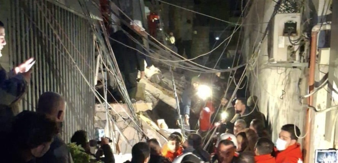 وقد وصل الجيش والقوى الأمنية إلى مكان المبنى المنهار.