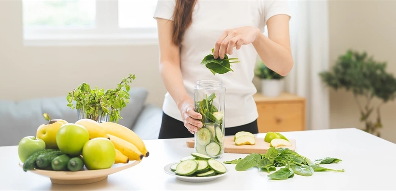 أما المشروبات، فتُعتبر المياه الخيار الأساسي بمعدل لا يقل عن 1.5 إلى 2 لتر يومياً، مع تجنّب المياه المثلجة والمشروبات الغازية والعصائر المحلّاة، مقابل الاعتماد على الماء المُنكّه بالليمون أو الخيار، والشاي الأخضر والعصائر الطازجة المخفّفة.
