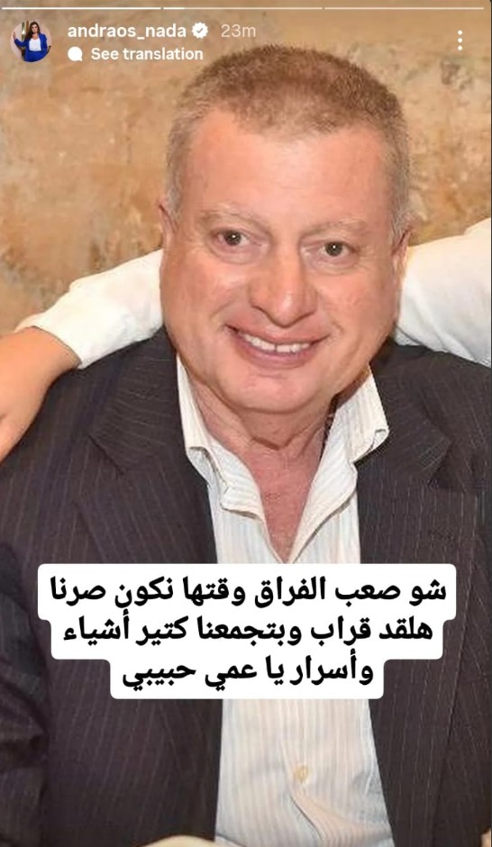 ونشرت ندى صورة للراحل عبر خاصية “الستوري” على حسابها الخاص على تطبيق انستغرام.