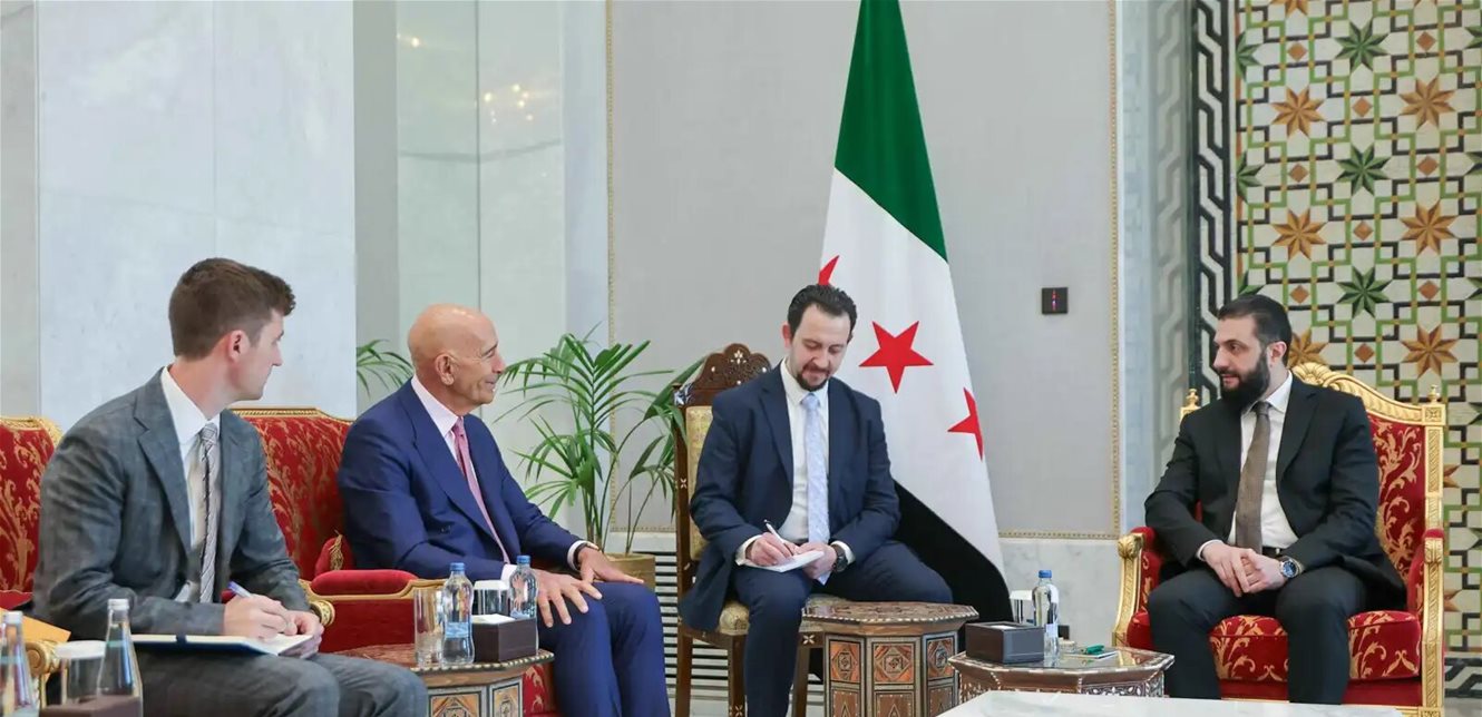 بحث المبعوث الأمريكي توماس باراك مع الرئيس السوري أحمد الشرع، الأربعاء، “التطورات الأخيرة في المنطقة والقضايا ذات الاهتمام المشترك”، بحسب ما كشفت عنه الرئاسة السورية.