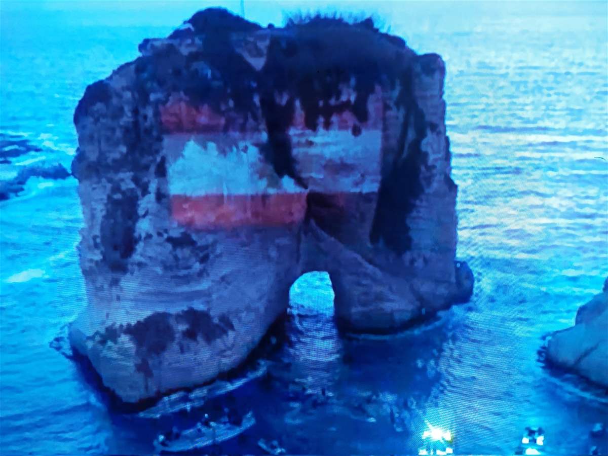 كما أضاء “الحزب” صخرة الروشة بالعلم اللبناني.