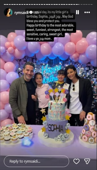 ووجّهت السعيدي رسالة إلى ابنتها، قالت فيها: “انه عيد ميلاد ابنتي الصغيرة صوفيا، روح الروح، فليحفظك الله ويحميكي”.