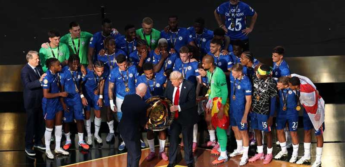 وخلال حفل التتويج، كان ترامب يقدم الميداليات للاعبين، قبل أن يسلم قائد تشلسي الإنجليزي ريس جيمز درع البطولة الذهبي.
