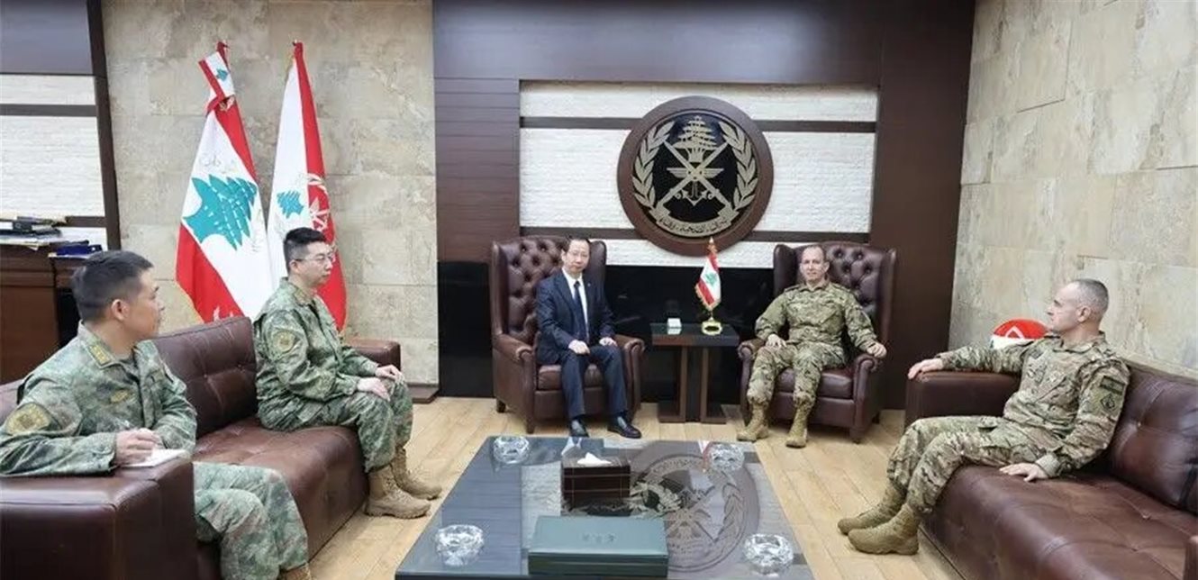 كما استقبل السفير الصيني تشن تشواندونغ، يرافقه الملحق العسكري Sr. Col. LiuChao، وتم البحث في سبل تعزيز التعاون بين الجيشين اللبناني والصيني.