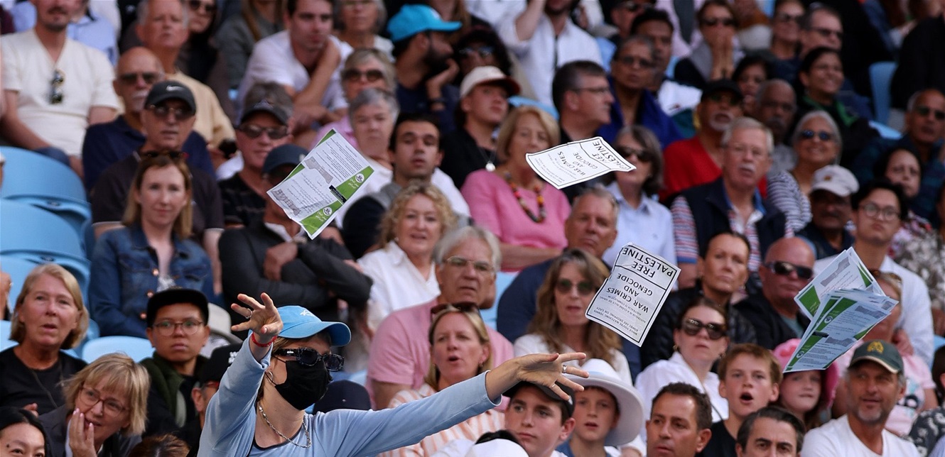 توقفت مباراة الدور الرابع لبطولة أستراليا المفتوحة والتي تجري حالياً اليوم الاثنين بين البريطاني كاميرون نوري والألماني ألكسندر زفيريف، بعد إلقاء منشورات مؤيدة لفلسطين في الملعب.