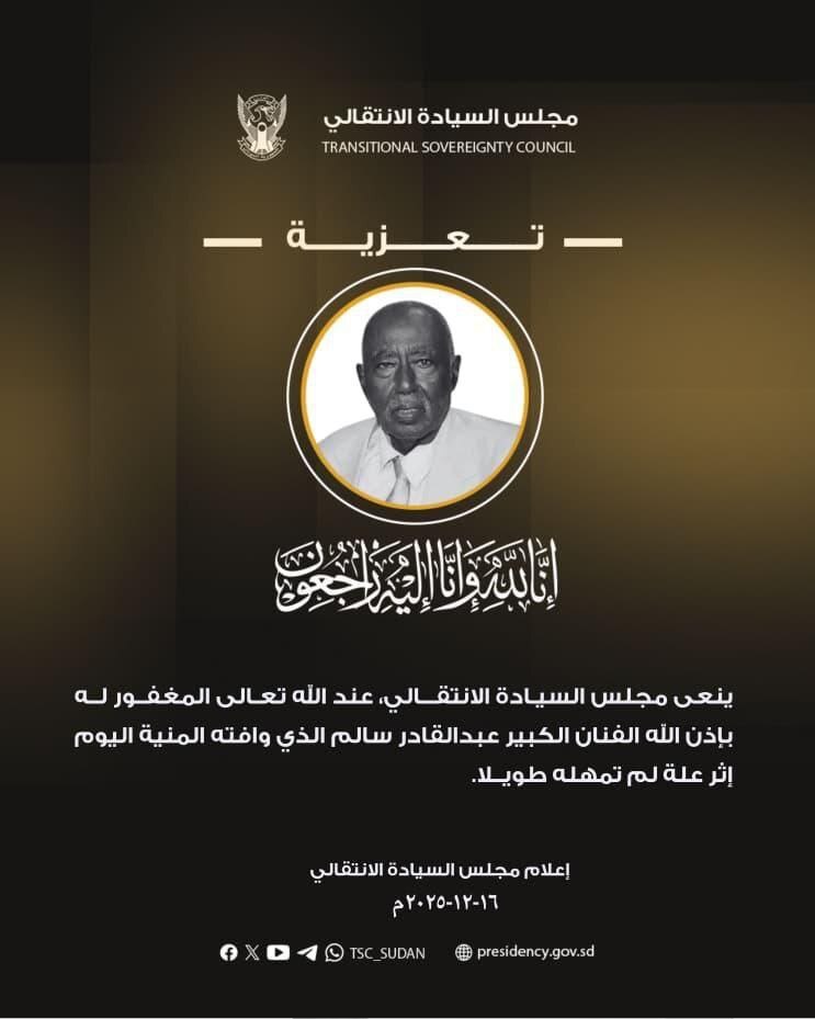 توفي اليوم الثلاثاء الفنان السوداني الكبير، عبد القادر سالم عن عمر يناهز الـ 80 سنة.