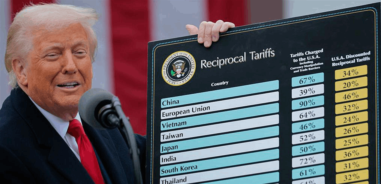 وفي 2 نيسان 2025 أعلن رسوما عالمية بنسبة 10 بالمئة على جميع الواردات، مع رسوم أعلى على عدد من الدول.
