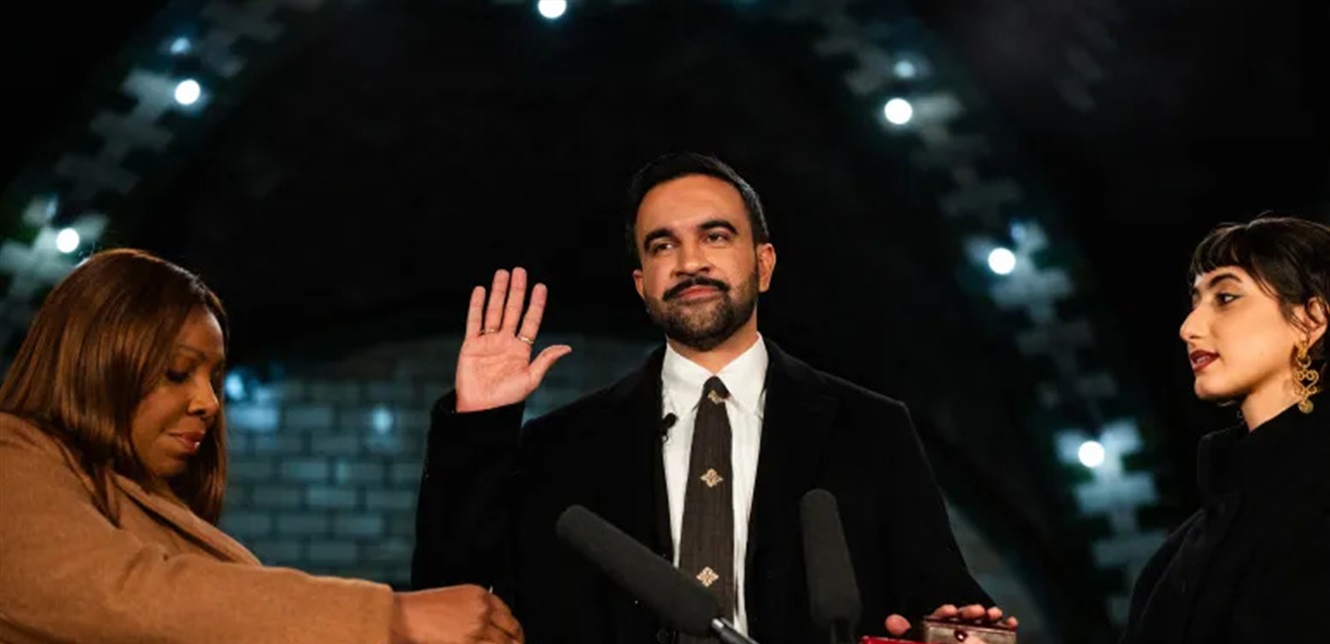 وبات ممداني، المعارض البارز للرئيس الأميركي دونالد ترامب، أول رئيس بلدية مسلم في تاريخ نيويورك، بعدما أدى اليمين على نسخة من القرآن حملتها زوجته، الرسامة راما دوجي.