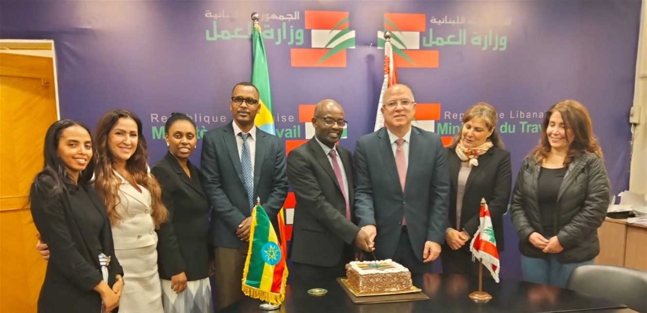 أضاف: ” تربط اثيوبيا ولبنان علاقات طويلة الأمد ويشمل التعاون التمثيل والزيارات واللقاءات رفيعة المستوى والروابط التاريخية والتبادل الثقافي والشركات وعلاقات العمل والدعم في المحافل الدولية ويتمثل الجانب المهم في علاقاتنا في توظيف العمال الاثيوبيين في لبنان ويهدف تنظيم القوى العاملة بشكل عادل ابرام البلدين اتفاقية واحدة عام 23. اليوم ندشن دخول هذه الاتفاقية المهمة حيز التنفيذ ويعكس توقيعها وتنفيذها التزاما مشتركا بين الدول لتعزيز سياسات العمل التي تتماشى مع الحماية الدولية والعدالة الاجتماعية. ان هذه الاتفاقات تمثل شراكة متجددة ومرحلة جديدة من تعميق علاقاتنا نظرا لانخراط اثيوبيا بشكل كبير في مجموعة واسعة من تنمية المهارات في اقتصادها الضخم “.