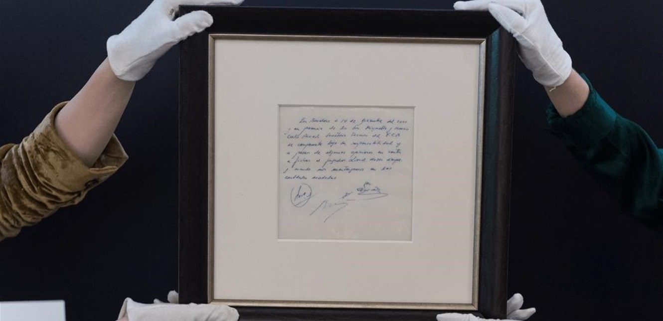 وبلغ سعر المزايدة على الوثيقة، التي وصفتها دار مزادات بونهامز البريطانية بأنها “حبر أزرق على منديل شمعي إسباني”، 220 ألف جنيه استرليني (274824 دولارا) بعد وقت قصير من فتح المزاد وفقاً لموقع الدار على الإنترنت.