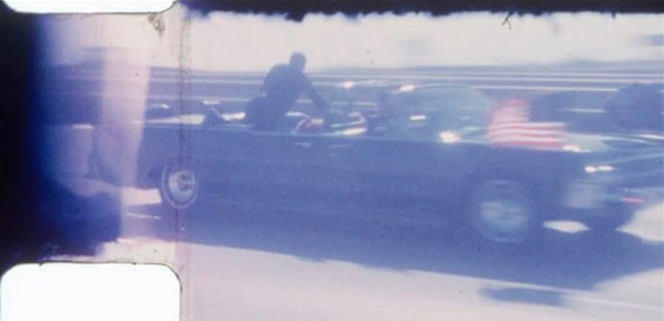 وتُظهر اللقطات من طريق I-35، التي تستمر حوالي 10 ثوانٍ، العميل السري كلينت هيل، الذي قفز على ظهر الليموزين عندما انطلقت الطلقات، وهو يقف في وضع واقف فوق الرئيس وجاكلين كينيدي، التي يمكن رؤية زيها الوردي.