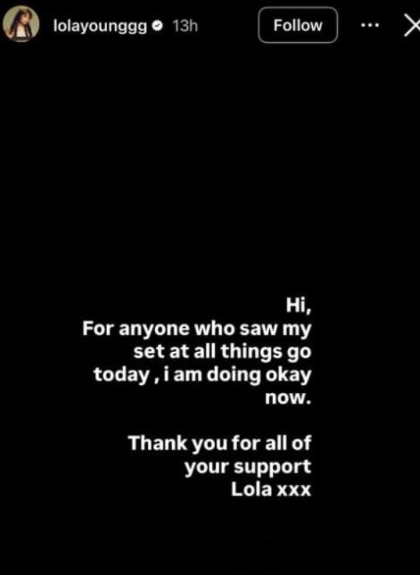 وخلال الحفل، أظهر فنانون آخرون تضامنهم معها، حيث طلبت مغنية الراب Doechii من الجمهور أن يرددوا “نحبك يا لولا”، بينما أوضحت الفنانة ريمي وولف أن يونغ بخير وتتلقى العناية خلف الكواليس.