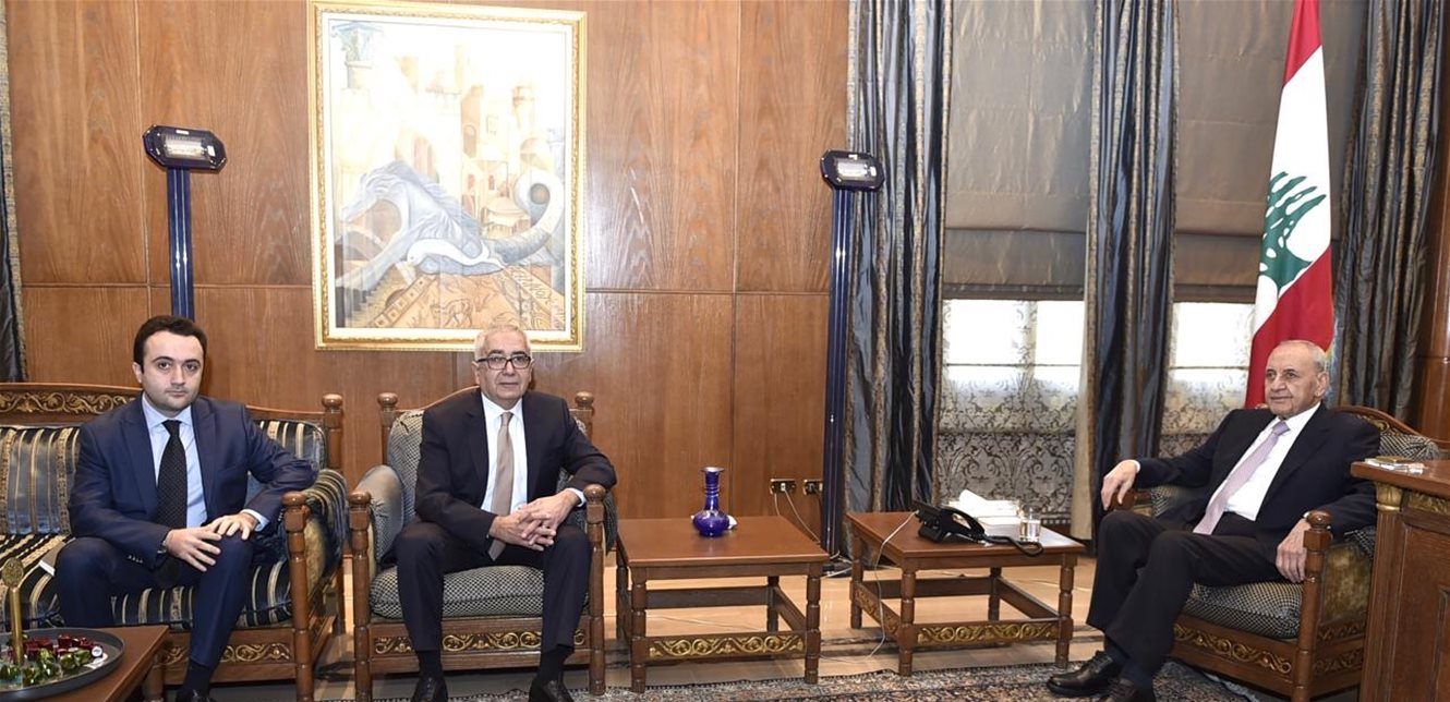 استقبل دولة رئيس مجلس النواب الاستاذ نبيه بري في مقر الرئاسة الثانية في عين التينة سفير أرمينيا سارمن باغداساريان في زيارة بروتوكولية بمناسبة توليه مهامه الجديدة كسفير لبلاده لدى لبنان ، الزيارة كانت مناسبة ايضاً جرى خلالها عرض للاوضاع العامة في لبنان والمنطقة والعلاقات الثنائية بين البلدين .
