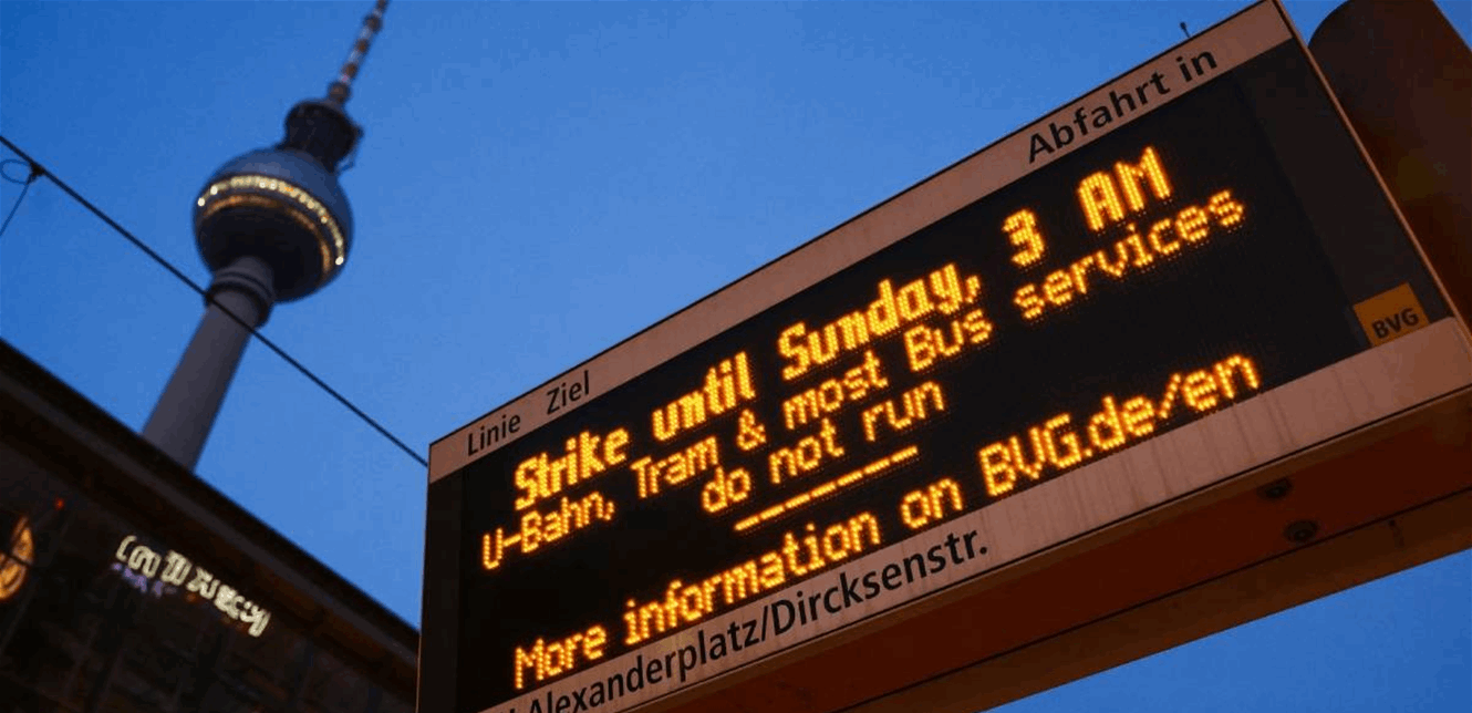 توقفت الحافلات والترام والقطارات في أنحاء ألمانيا باكراً صباح الجمعة، استجابة لدعوة نقابة “فيردي” للقطاع العام إلى إضراب يمتد يومي “27 و28 شباط”.