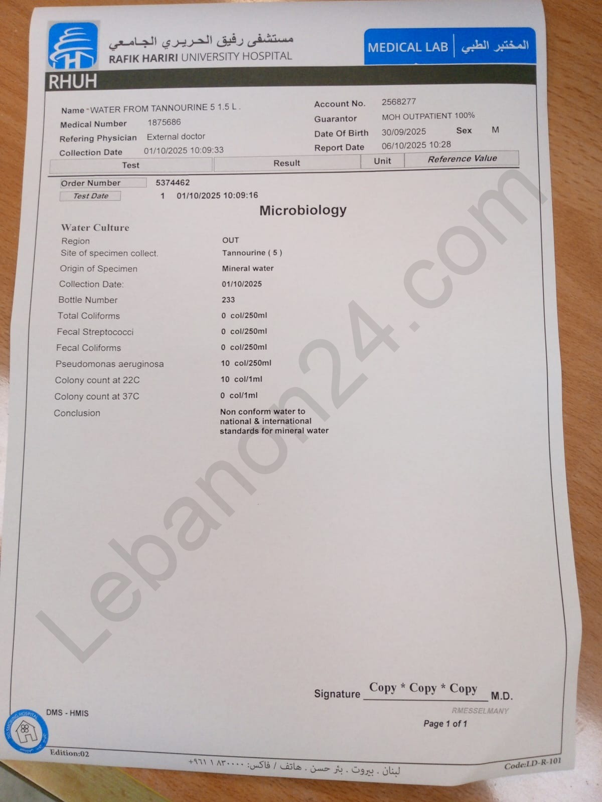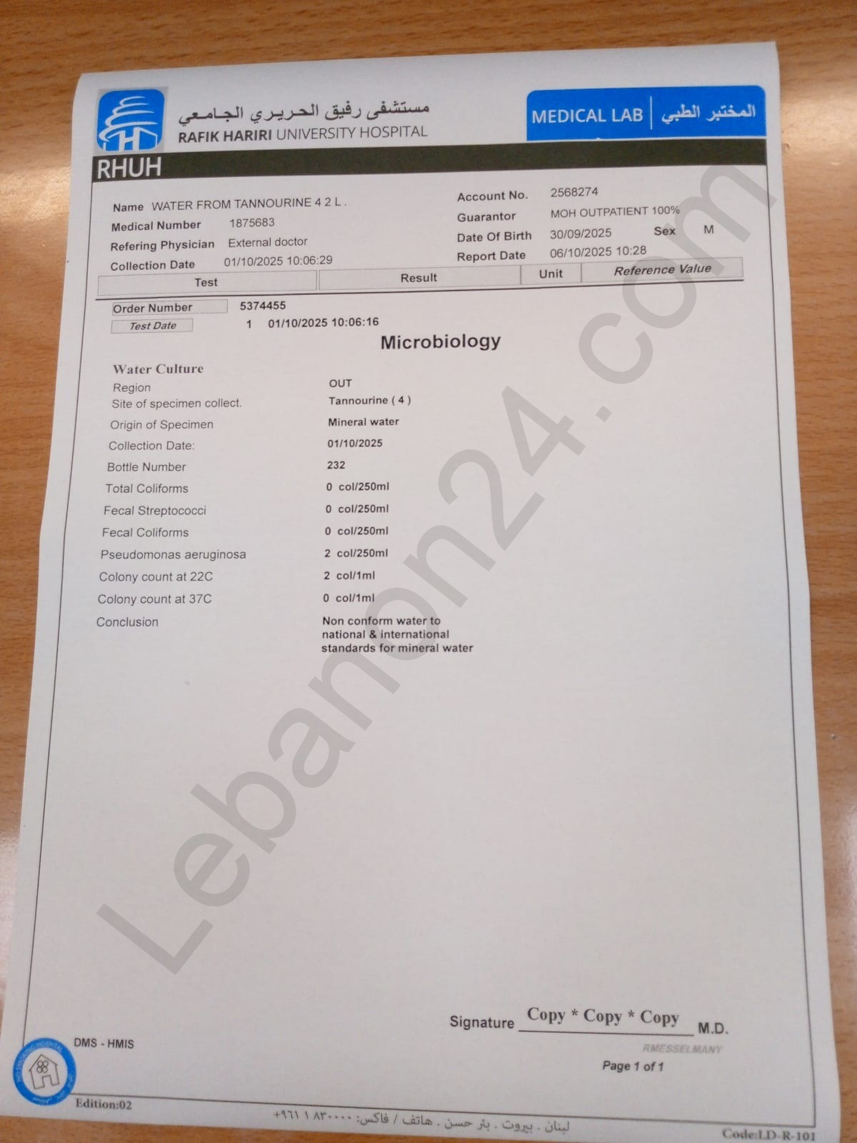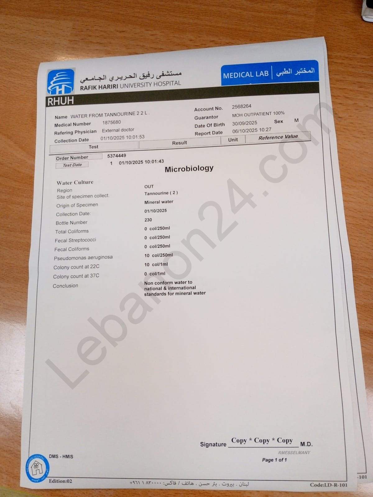 صور لنتائج فحوصات مياه “تنورين”.. شاهدوها