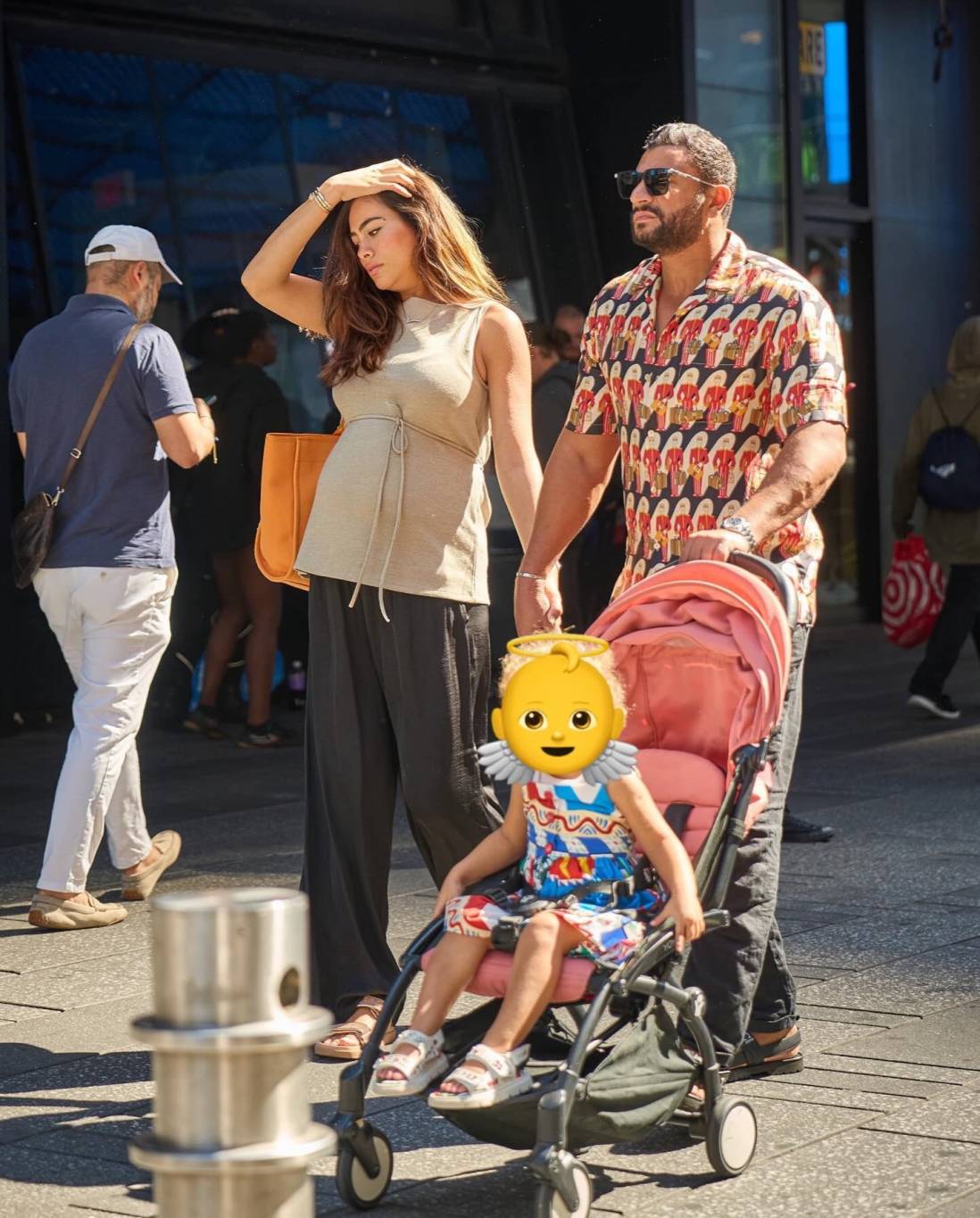 وظهرت هاجر في الصور وهي تسير جنب زوجها الذي يدفع عربة أطفال تجلس فيها ابنتهما الأولى، وقد أخفت هاجر وجه الطفلة بـ”إيموشن”، وبدا بطنها منتفخاً من الحمل، وعلّقت على الصور بالقول: “قلوبنا ممتلئة، عائلتنا تكبر”.
