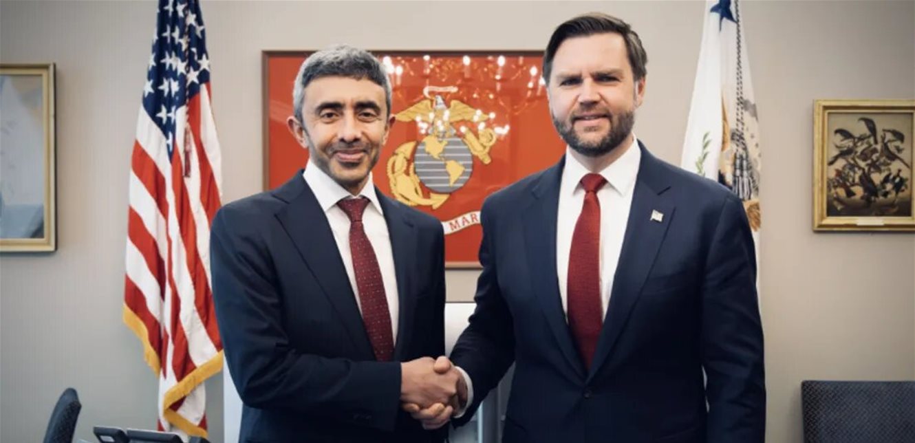 التقى الشيخ عبدالله بن زايد آل نهيان، نائب رئيس مجلس الوزراء ووزير الخارجية الإماراتي، مع جي دي فانس، نائب رئيس الولايات المتحدة، خلال زيارة عمل يقوم بها إلى واشنطن.