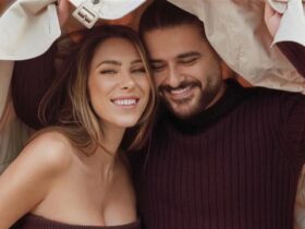 ونشرت أبو ضيف مجموعة صور لهما عبر خاصية القصص المصوّرة الملحقة بحسابها الخاص في “إنستغرام”، ظهرت فيها وهي تحتضن خطيبها وتستعرض خاتم الخطوبة في إصبعها.
