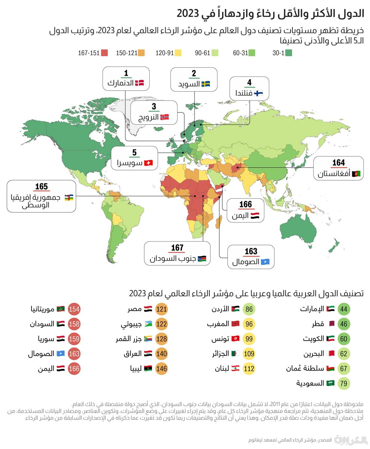 ومؤشر الرخاء العالمي هو تصنيف سنويّ يصدر عن معهد “ليغاتوم” البريطاني، ويعتمد على 104 معايير في تصنيفه موزعة على 12 فئة، من بينها الصحة والتعليم والحريات الشخصية والسلامة والأمن وبيئة الأعمال.