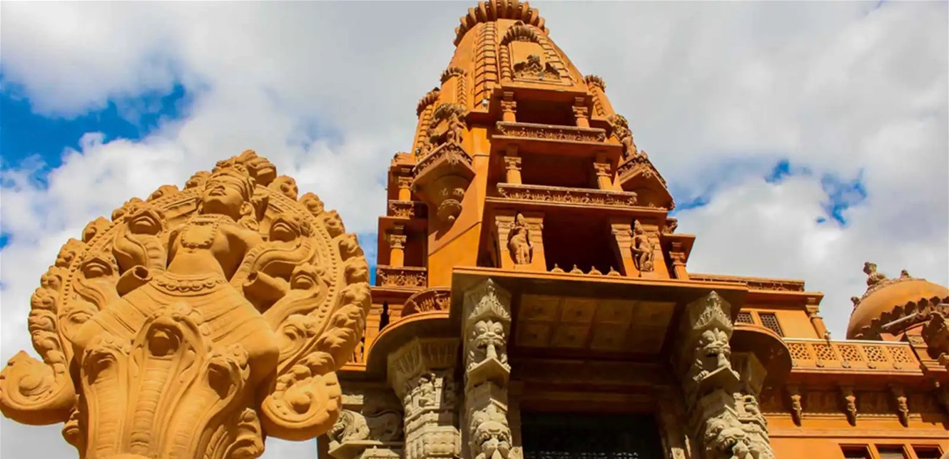 شُيّد القصر بطراز غير مألوف في المنطقة، مستوحى من المعابد الهندوسية في شكله الخارجي، بينما استلهمت غرفه الداخلية من فنون عصر النهضة الأوروبية. ويتميّز ببرج عاجي مهيب وغرف فسيحة تملؤها النقوش والتماثيل التي تُضفي رهبة وغموضًا على المكان.