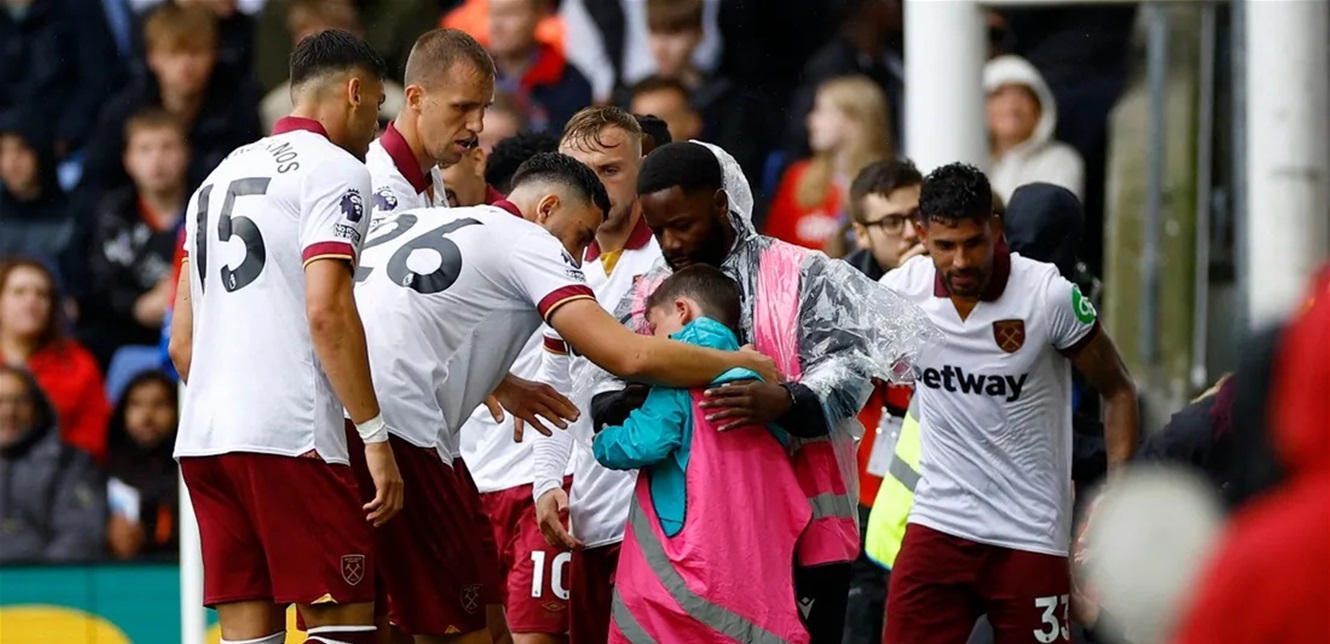 واضطر ثنائي فريق وست هام، توماش سوتشيك وجارود بوين، إلى التوقف عن احتفالهما بتسجيل هدف من أجل منع كارثة بإنقاذ صبي من حاملي الكرات سقطت فوقه شاشة إعلانات، في المباراة التي فاز فيها الفريق بهدفين نظيفين على كريستال بالاس.