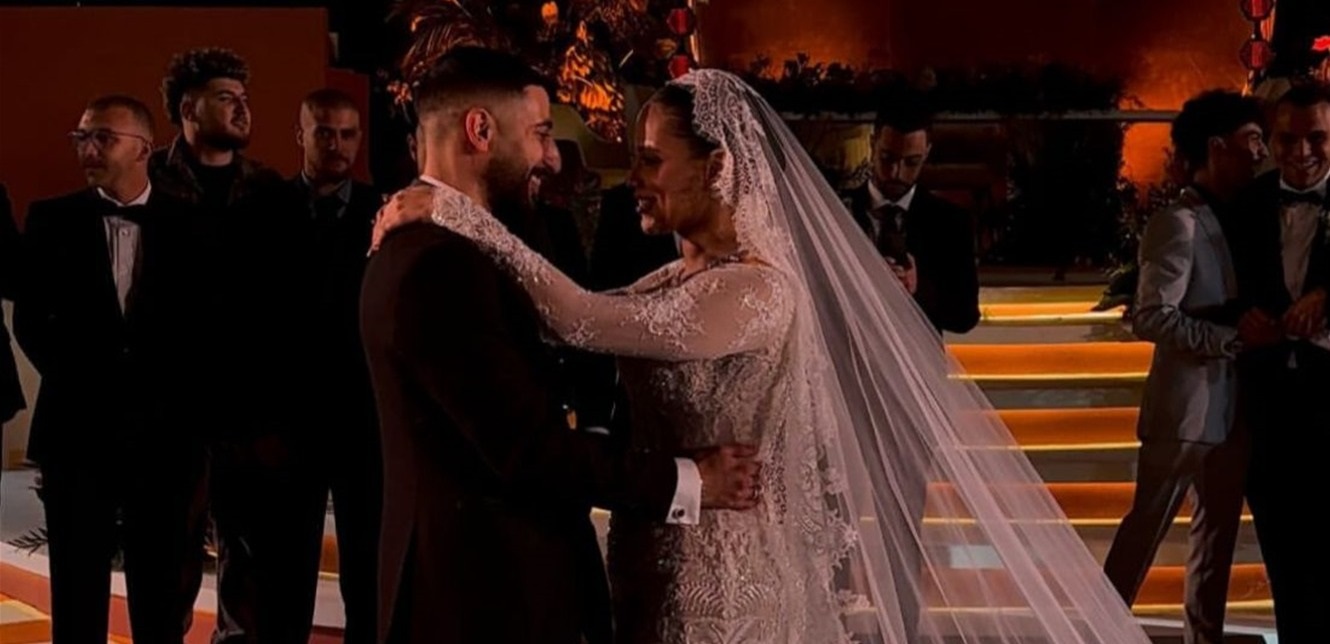 ونشر آدم صورا التقطت من حفل الزفاف، وسط غياب والدته التي تعيش في الولايات المتحدة.