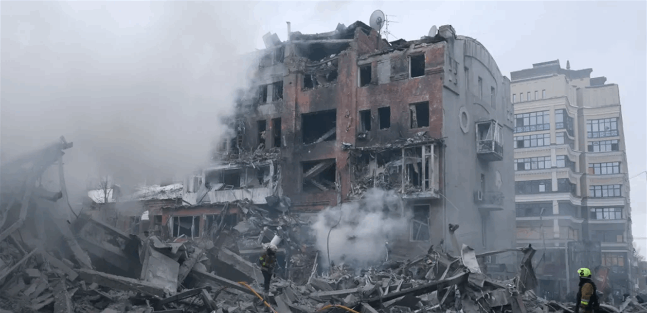 وتعرض مبنى سكني متعدد الطوابق للتدمير شبه الكامل في الهجوم الصاروخي المزدوج الذي وقع بعد ظهر يوم الجمعة، والذي وصفه الرئيس الأوكراني فولوديمير زيلينسكي بأنه “شنيع”.