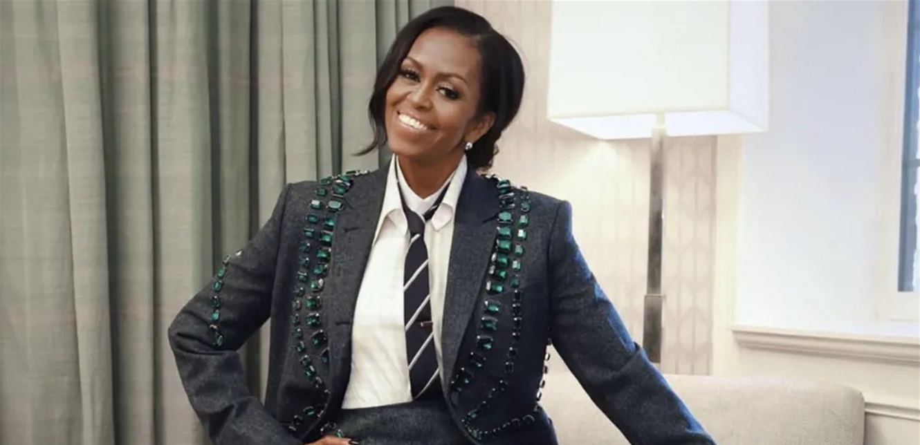 هذه الإطلالة تعكس قدرة ميريديث كوب على ترجمة شخصية ميشيل أوباما إلى لغة أزياء واضحة تجمع بين الفخامة، الحداثة، والعملية.