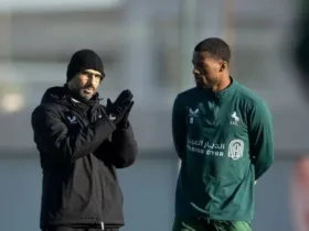 وقبل بداية اللقاء، كان رونالدو يؤدي عملية الإحماء الروتينية استعدادا للمباراة، عندما لفت انتباهه شخص موجود في مدرجات ملعب “الأول بارك” في الرياض يرتدي قميص نادي النصر ويشبه “الدون” بشكل لافت للنظر.
