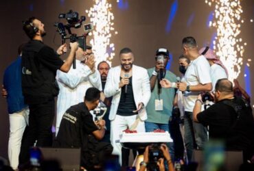 بالفيديو: تامر حسني يحتفل بعيد ميلاده على مسرح حفله في جدة