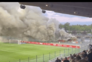 فيديو من فرنسا… حريق ضخم يتسبب في إلغاء مباراة
