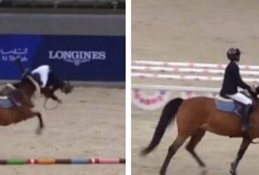 بالفيديو.. سقوط نجل أمير قطر من ظهر الجواد