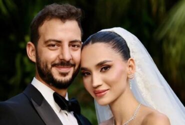 رقصت مع عريسها بطريقة غريبة.. ملكة جمال لبنان السابقة كالأميرات في زفافها وفنان شهير يُغني لهما (فيديو)
